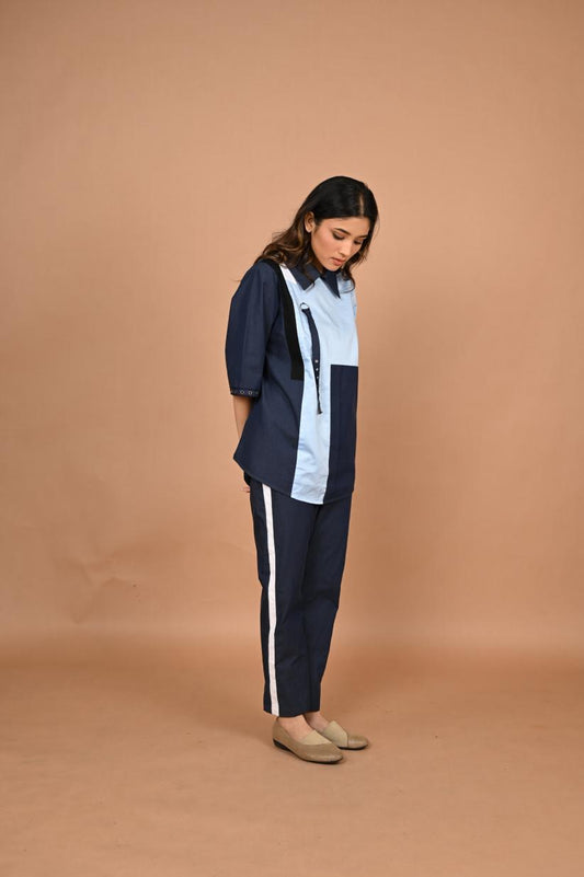 Cobalt Blue 3D Organza Flower Co-ord Set